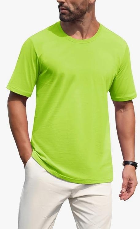 With a full-cut for a roomier fit that lets you move with ease, this Luminous Green short-sleeve round neck tee is made to last, with durable double stitching at the sleeves and hem.