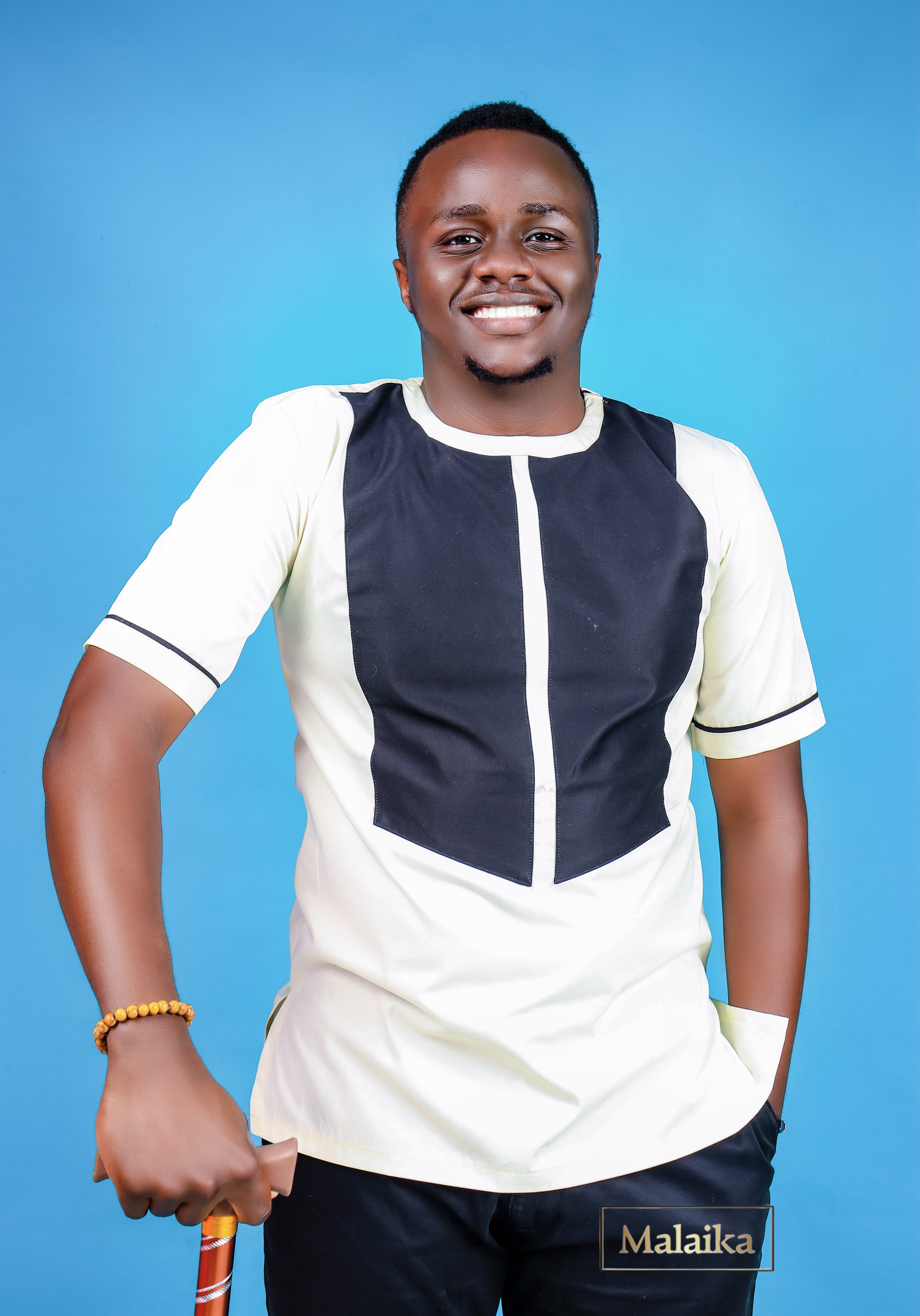 This elegant short-sleeve men’s shirt blends simplicity and bold design, featuring a cream base contrasted with a striking black front panel and white detailing. The clean, modern cut with subtle black piping on the sleeves adds a polished touch, making it perfect for casual, semi-formal, or cultural occasions. Tailored for comfort and style, this bespoke outfit showcases a contemporary African-inspired aesthetic that pairs effortlessly with black trousers or jeans. Elevate your wardrobe with this versatile and statement-making design, ideal for events, gatherings, or everyday wear.