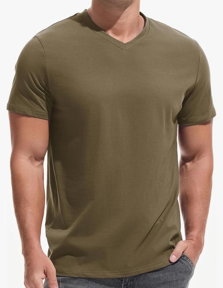 High-quality material: Our Army Green Premium V-Neck T-shirts fabric is soft, comfortable, moderately elastic Comfortable fit: The design of the t-shirt is form-fitting, which can show off your body shape well and feels very comfortable to wear. It is suitable for various occasions. Essential T Shirts for Men . Performance Fabric. Wrinkle Resistant Breathable.soft and comfortable. Durability: The material is easy to care for and clean, and the t-shirt does not deform after multiple washes, so it is very durable